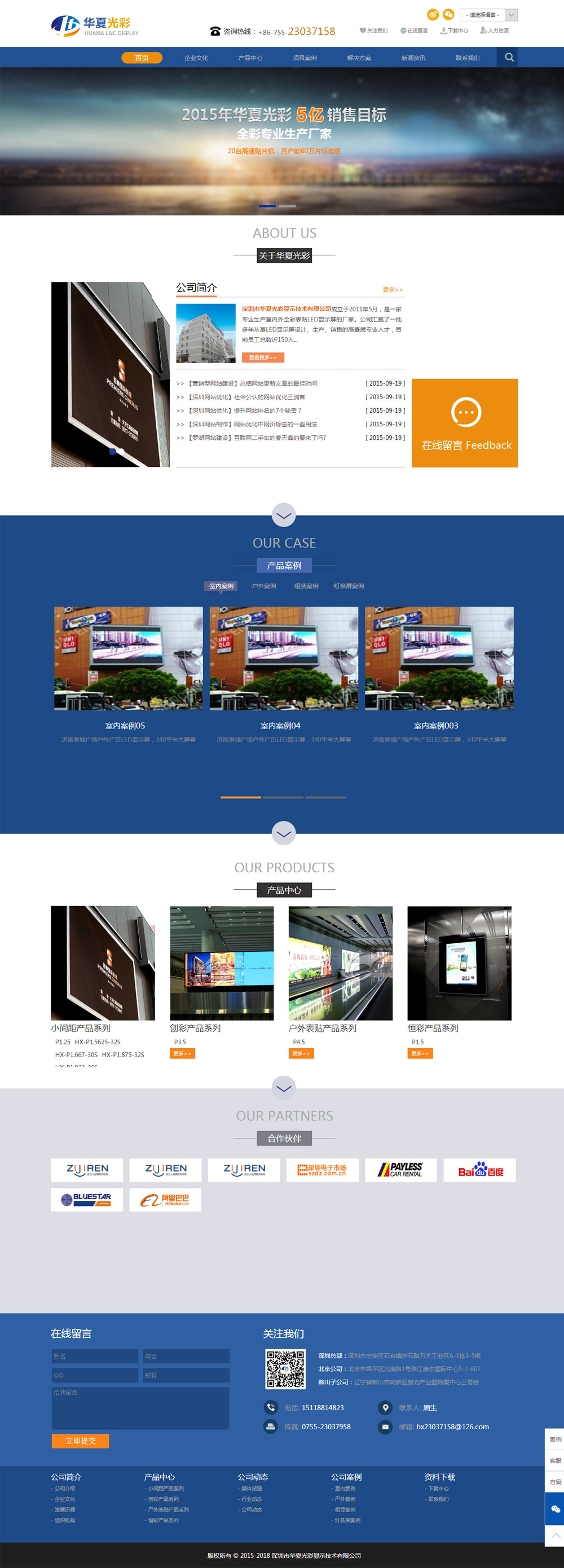 深圳市华夏光彩显示技术有限公司成立于2011年5月,是一家专注于研发和生产室内外表贴全彩模组的生产型企业。公司从成立伊始就秉承 ‘专业铸就精品,品质成就辉煌’的专业精神。汇集了一批多年从事LED显示屏设计、生产、销售的高素质专业人才,目前员工总数200余人。公司于2014年5月在辽宁鞍山成立分公司,成为东北地区一家Led生产型企业。于2015年6月成立户外表贴新的生产基地以应对新的市场增长。