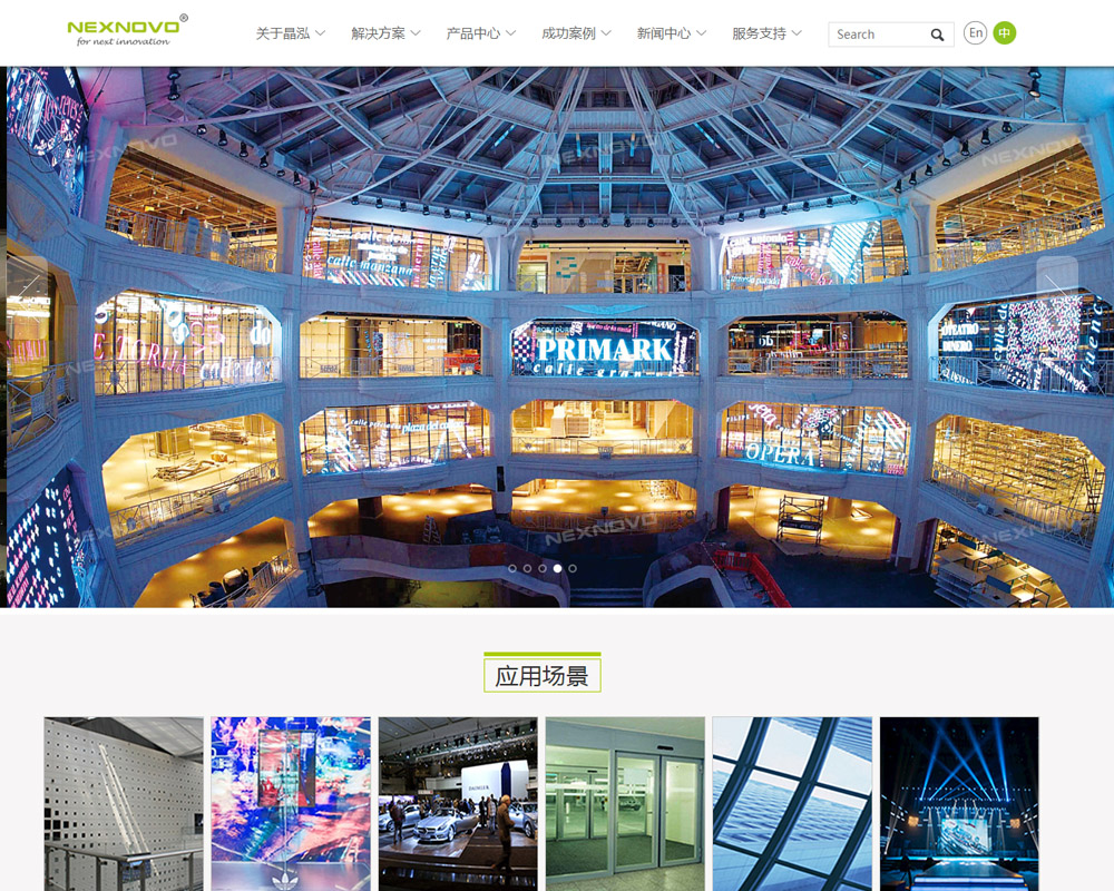 目前NEXNOVO产品广泛运用于店面橱窗广告、连锁餐厅、购物商场、机场、博物馆、金融机构、汽车4S店 、展览会、盛大节日活动场所、舞台搭建、建筑幕墙等领域。亮度可高达6000nit,是目前业内解析度和亮度高的透明LED显示屏。像素间距小到2.0mm,大到31.25mm,可满足各种应用需求。晶泓科技通过不断努力和创新,近年推出XRW、XT、NS、NR、NH等系列产品,结构更简约、质量更稳定、使用更方便,重量更轻、耗能更少、外观更吸引人。